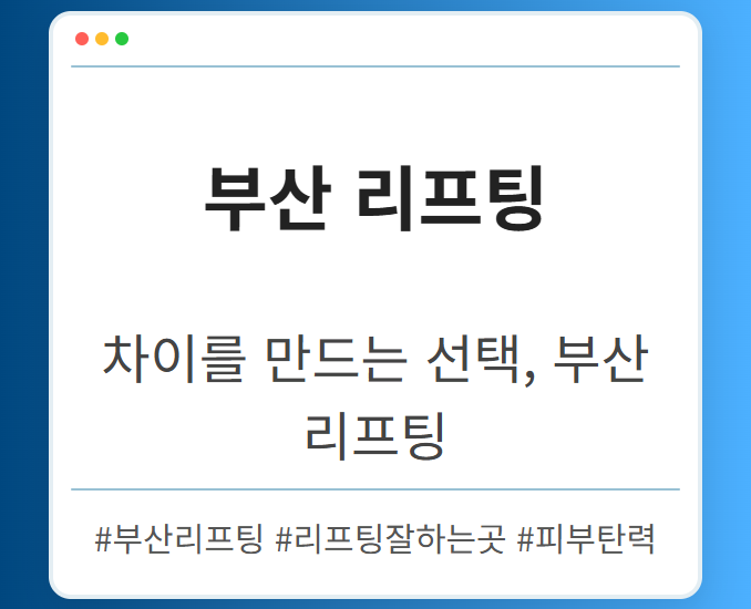 목차 부산 리프팅, 왜 후기 많은 곳을 찾아야 할까요? 객관적인 정보 확인의 중요성 나에게 맞는 정보 습득 방법 개인적인 경험