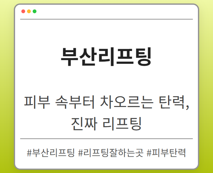 목차 부산 리프팅, 왜’진짜’를 찾아야 할까요? 나에게 맞는 리프팅, 어떻게 찾을까? 부산 리프팅, 가격보다 중요한 것은? 부산 리프팅, 후기만 믿고